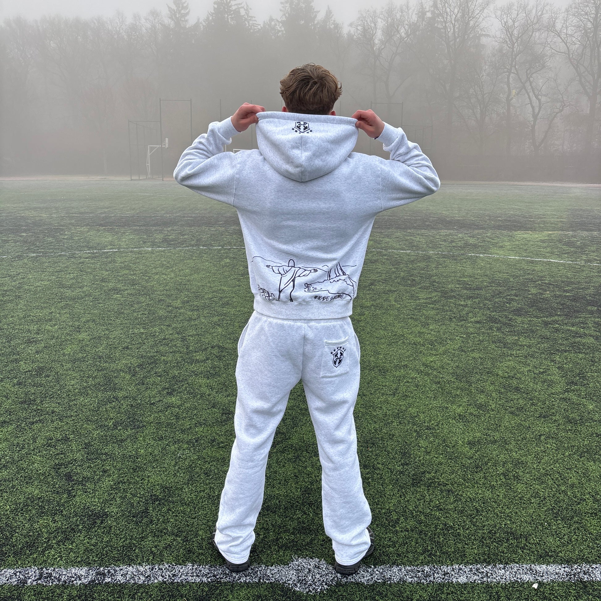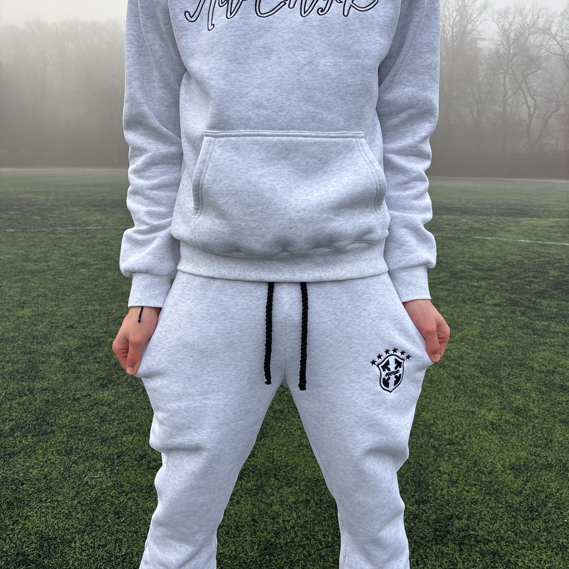 Made from the same premium grey 70% cotton / 30% polyester blend, they offer a perfect balance of comfort and clean athletic style.