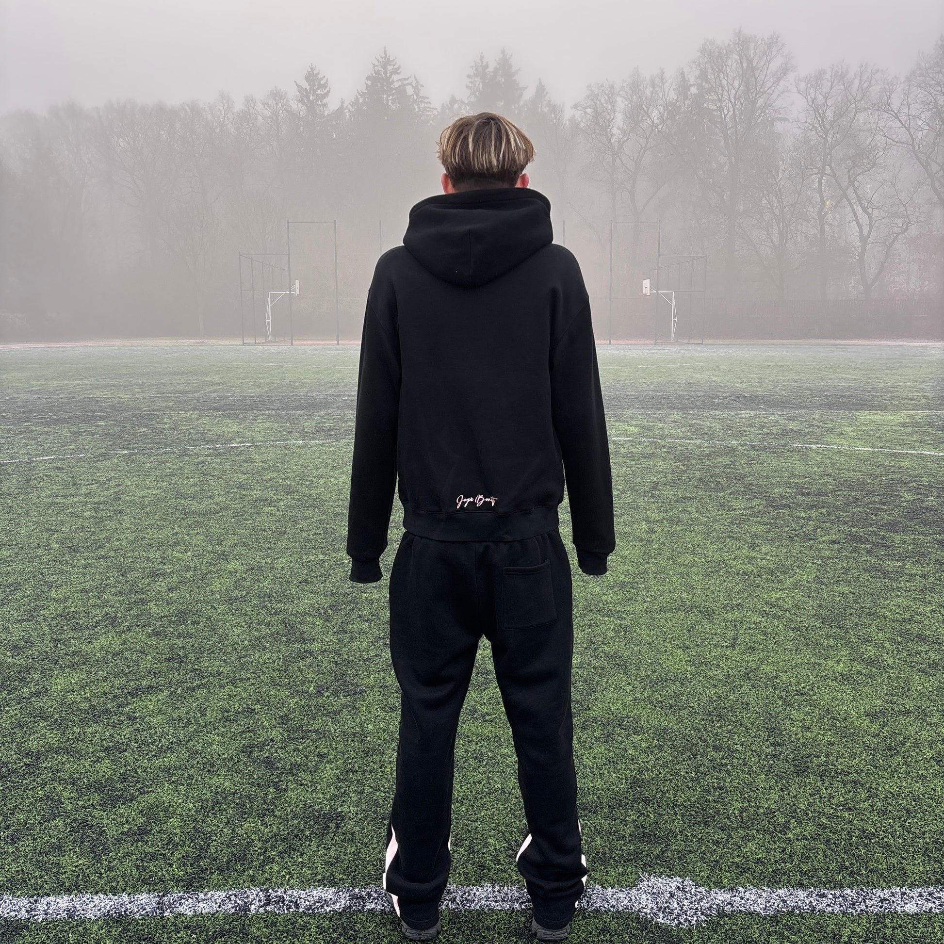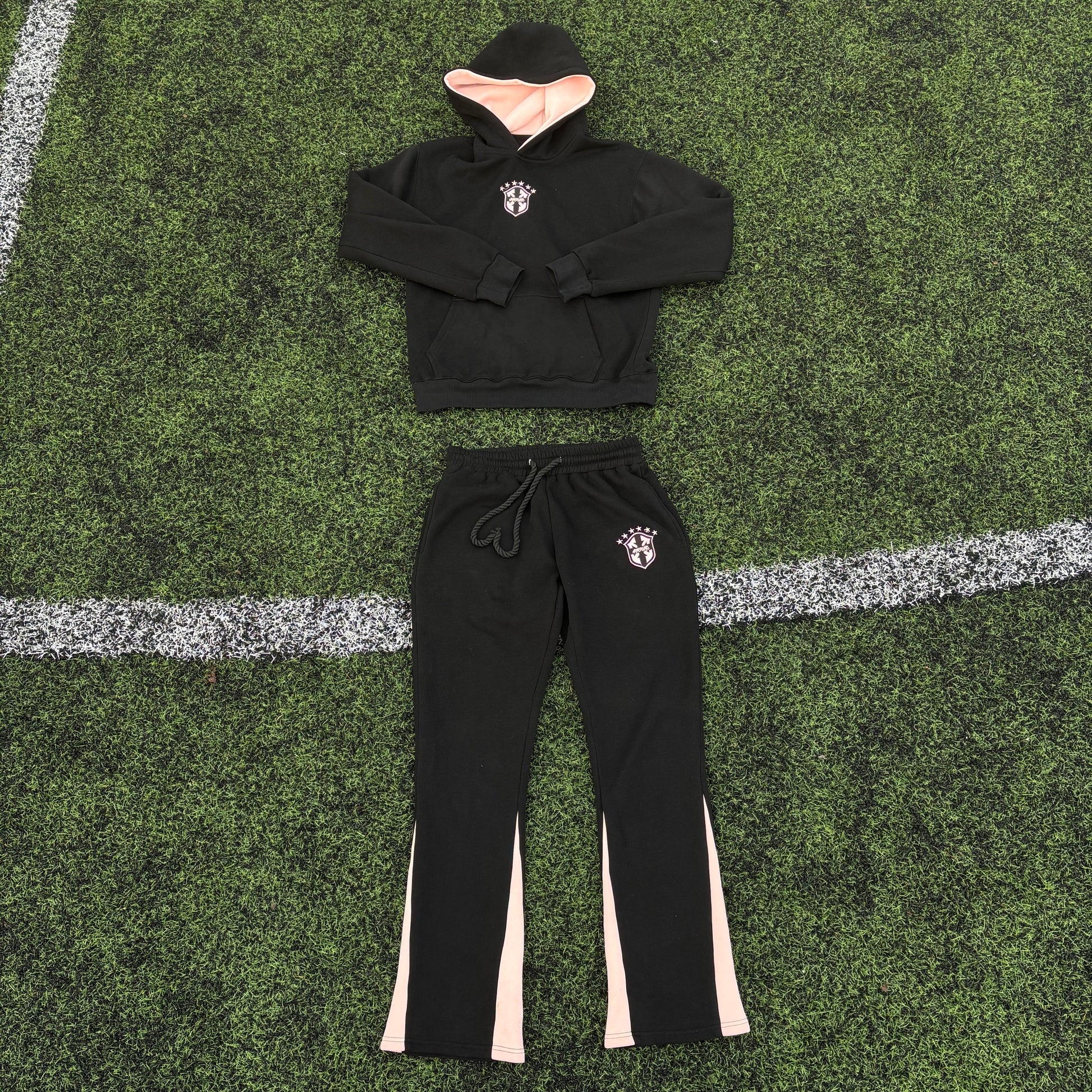 The Dark Rosa Tracksuit combines a black–pink hoodie with matching flared pants to create a full outfit made for modern footballers. Soft, warm, durable, and clean in design — this set delivers the comfort you need for training days and the style you want everywhere else.
